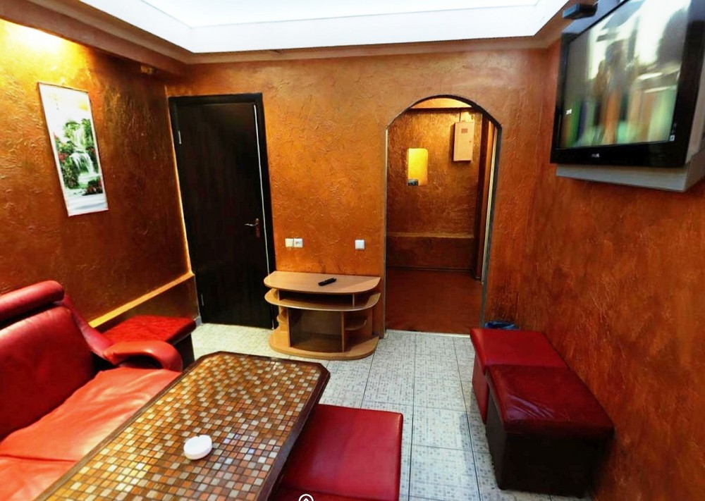 - комната с мягким диваном, столом и телевизором 42"(подключено MEGOGO, сотни каналов в цифровом качестве в вашем распоряжении);